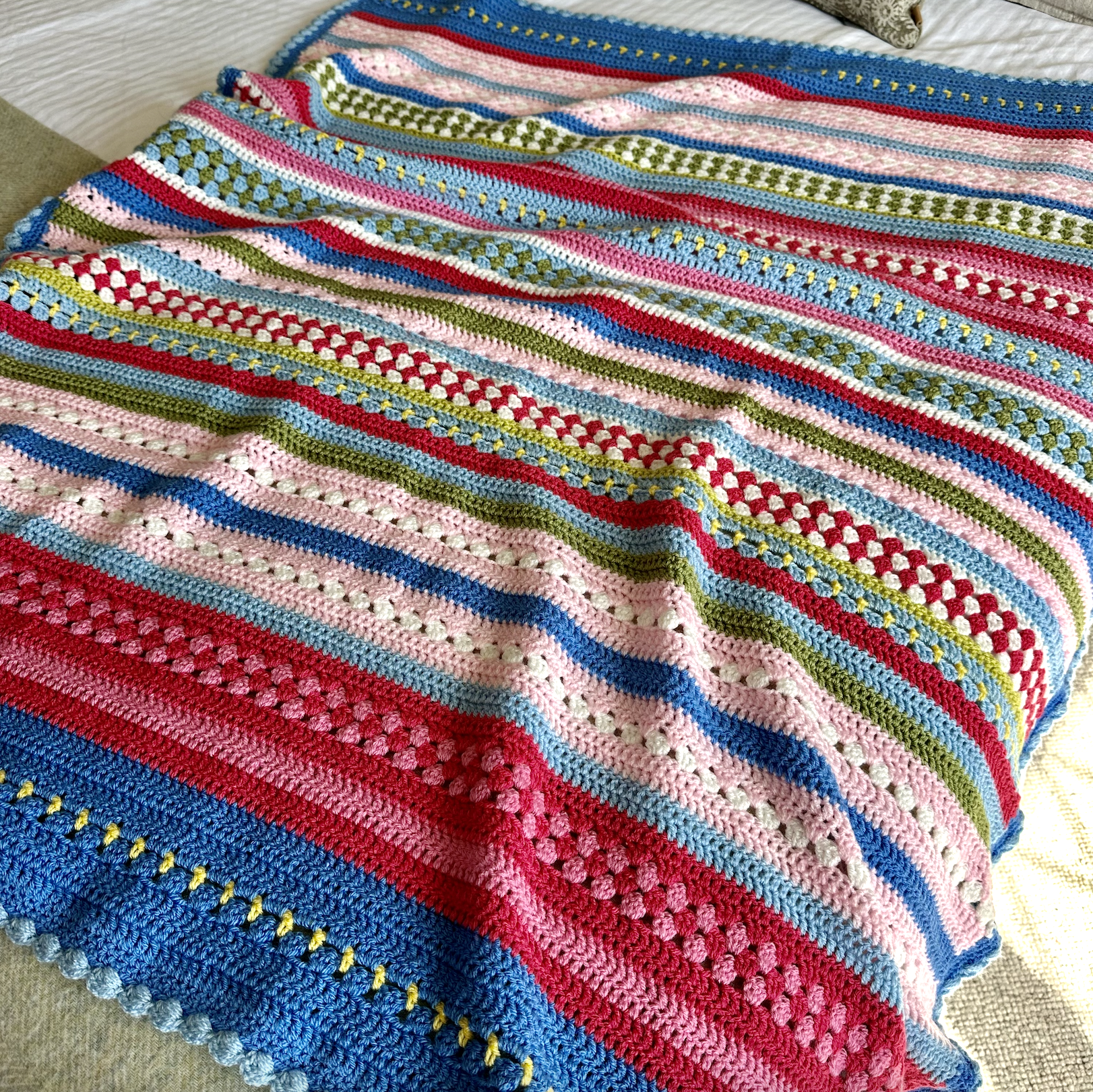 A soft, spring-inspired blanket made from simple, relaxing stitches.