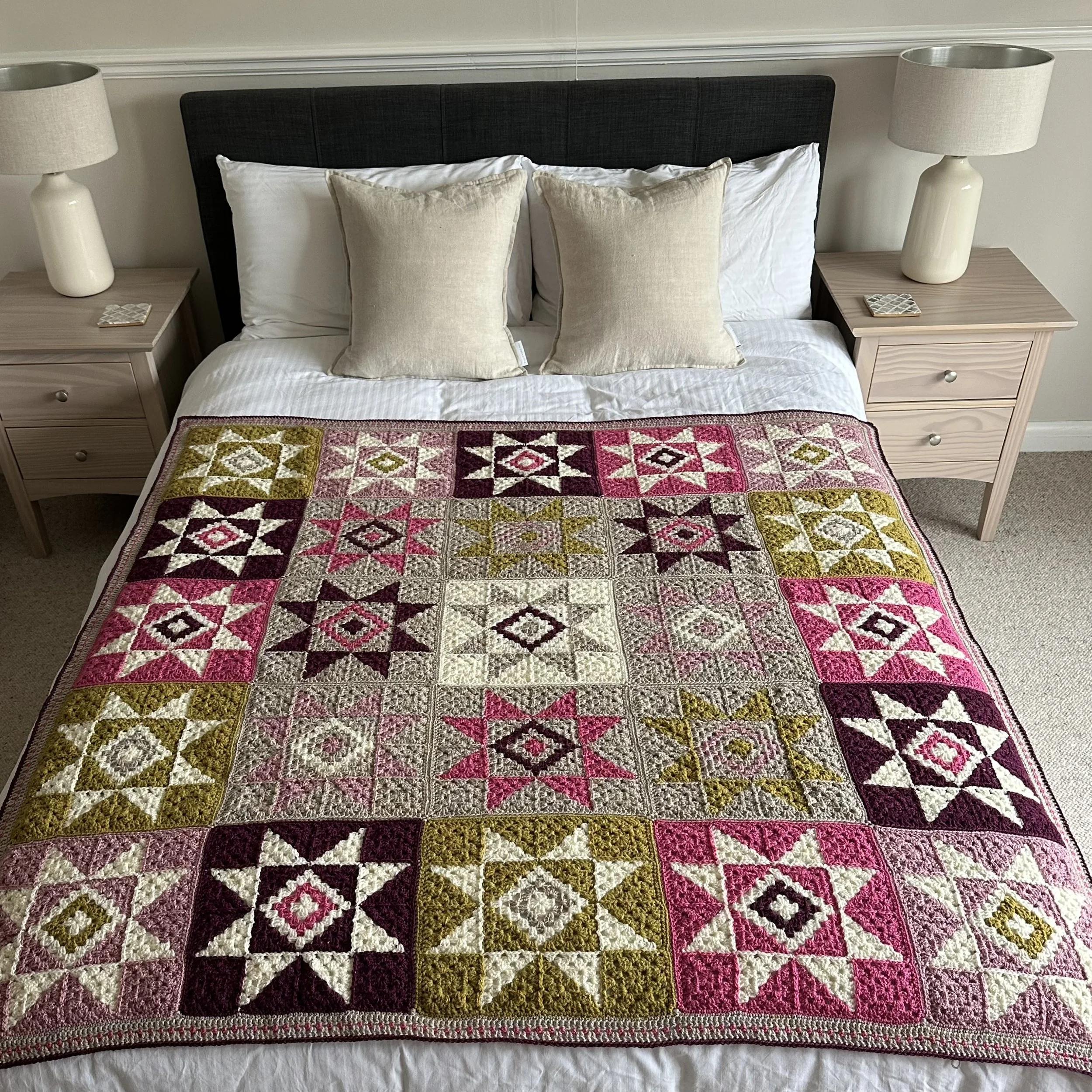 This new colourway of my Quiet Sky Blanket features my favourite shades of Stylecraft Life DK: Oatmeal, Cranberry, and Mustard. It has a cosy, autumnal feel and makes a lovely alternative to a full-on Christmas design.