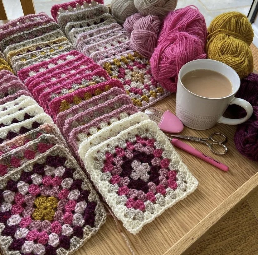 Here’s another of my blankets made with the same colours. I always find myself reaching for them, and if that’s not yarn love, I don’t know what is!