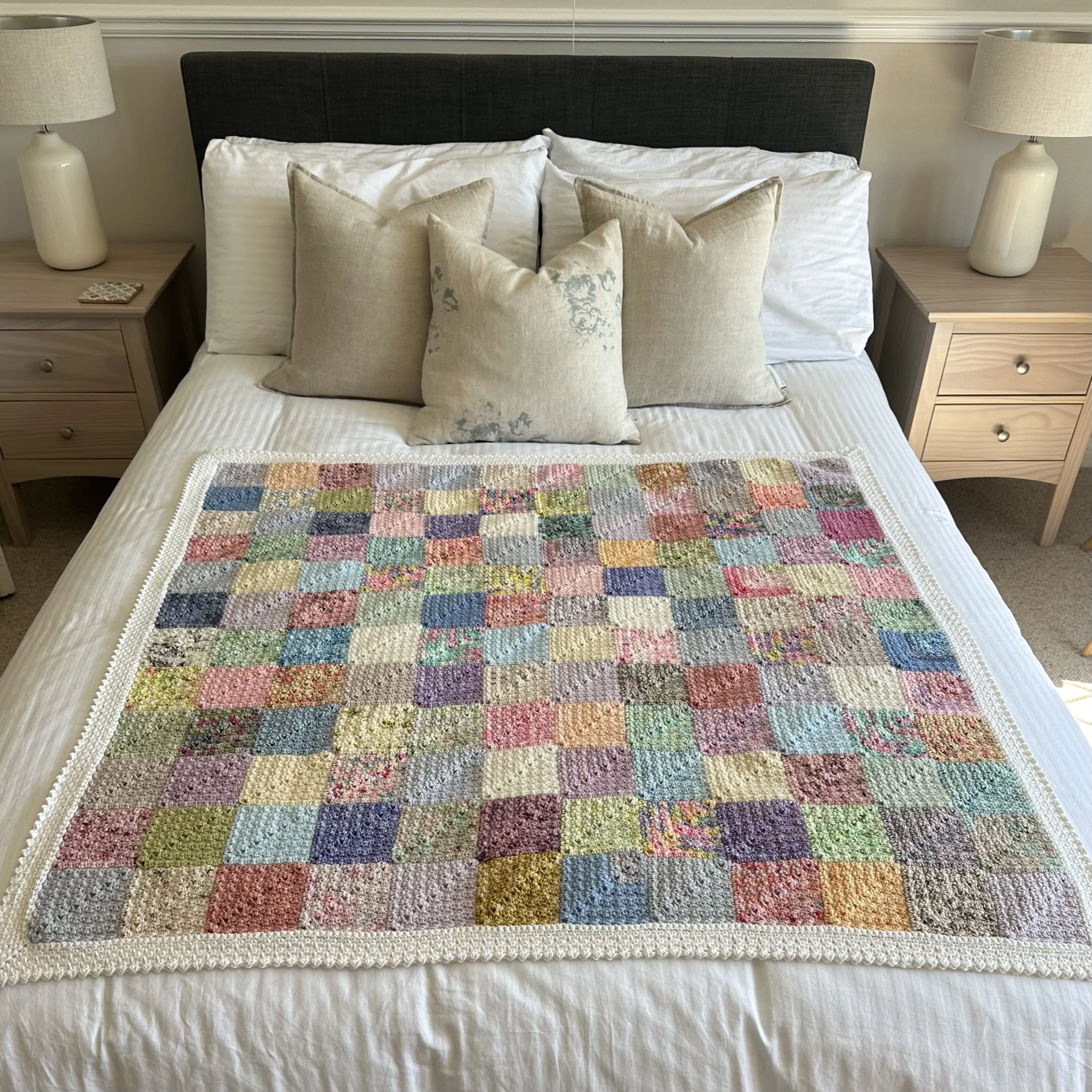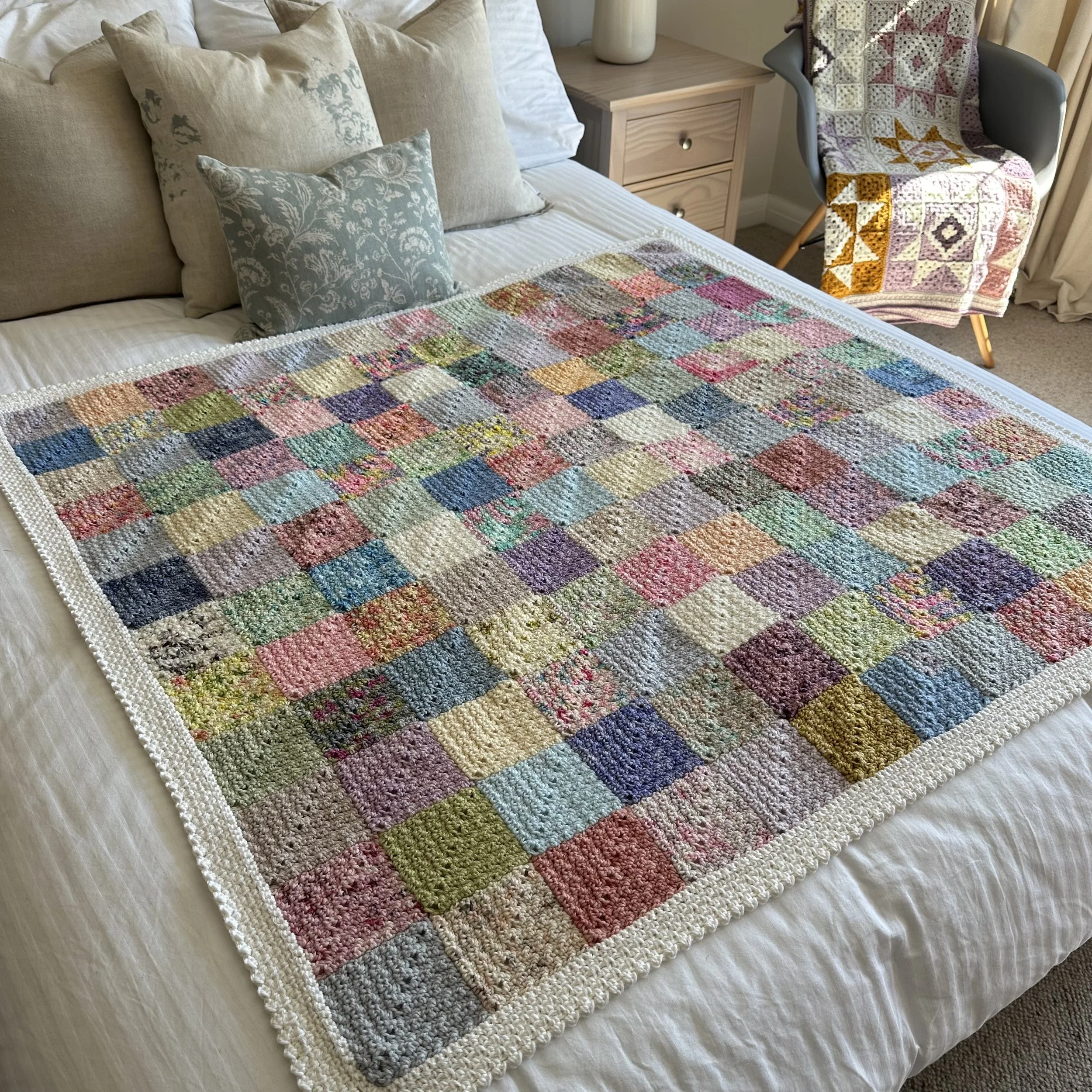 The pattern has my usual step by step picture tutorials and there is an accompanying video, linked in the pattern, to guide you every stitch of the way. If you would like to make your own Sunday Squares blanket, here are the links.