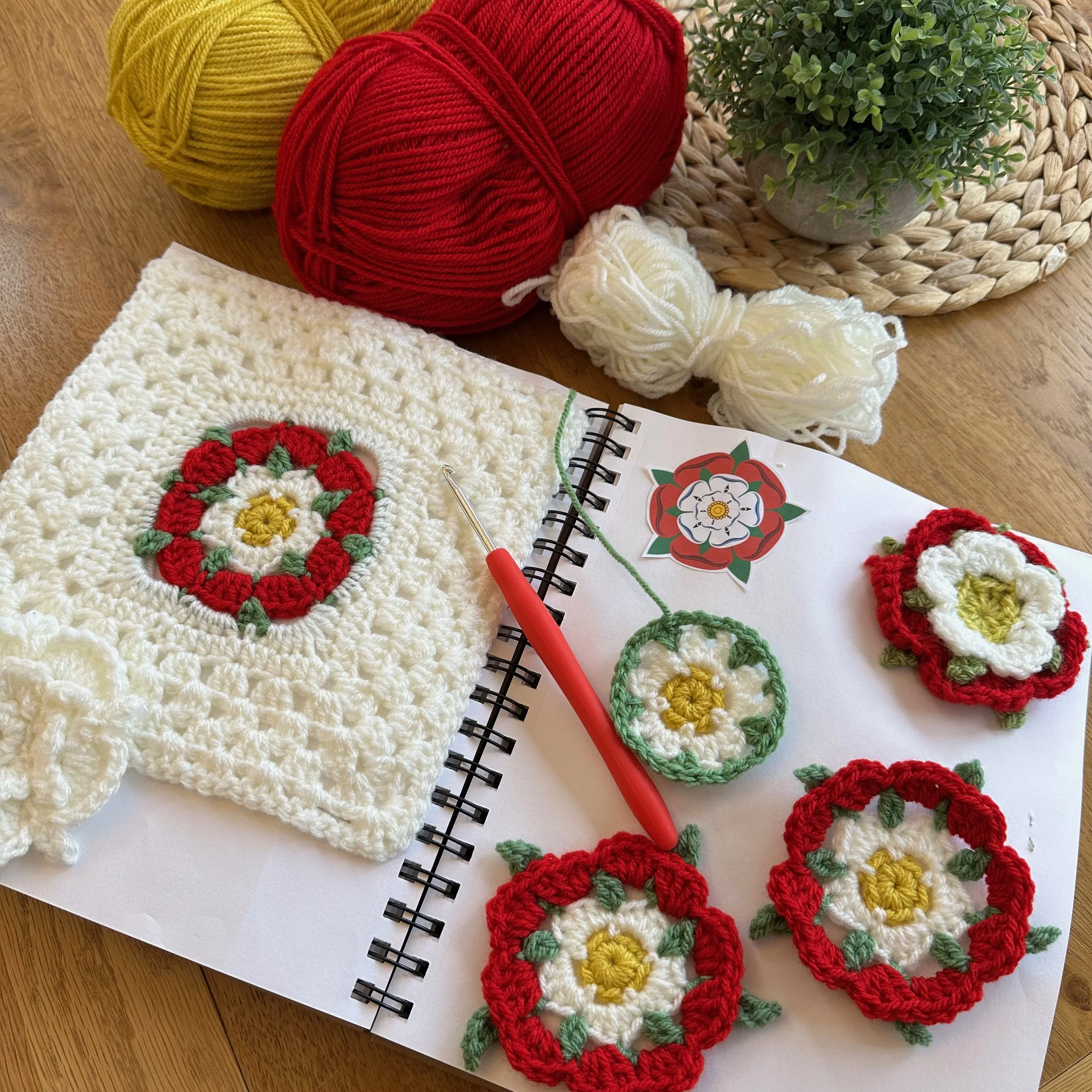 Week six is a final border to finish off the blanket and then it’s time for the appliqué motifs. As well as the St. Edwards Crown, Orb and Sceptre and Tudor Rose, I have also made patterns of the Thistle of Scotland, Daffodil of Wales and Shamrock of Ireland, so all nations are represented. You can personalise your blanket with whichever ones you choose.