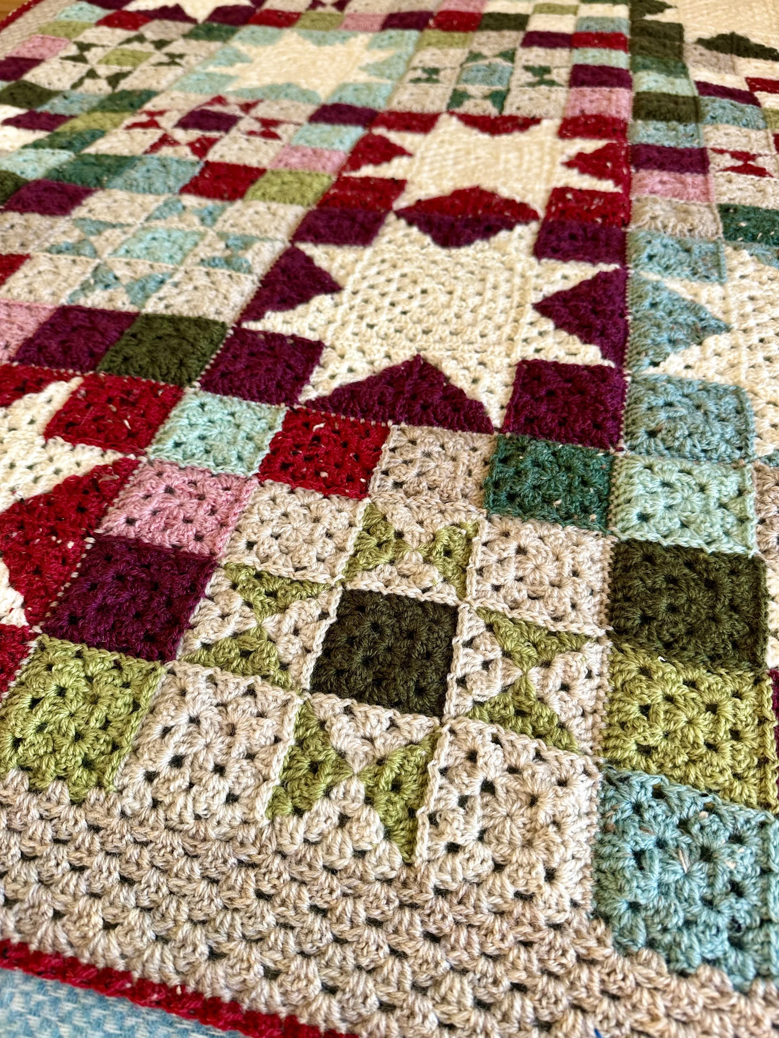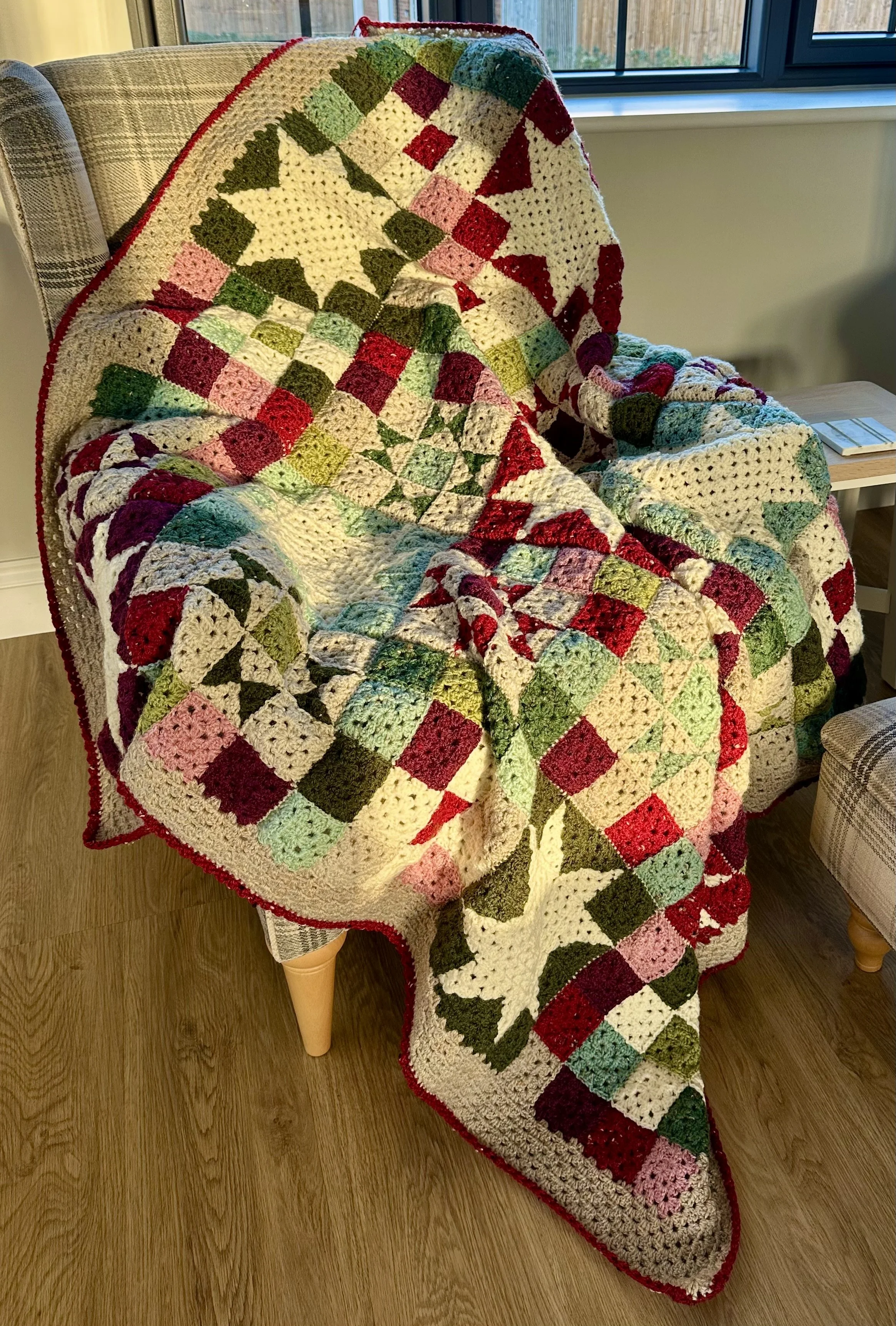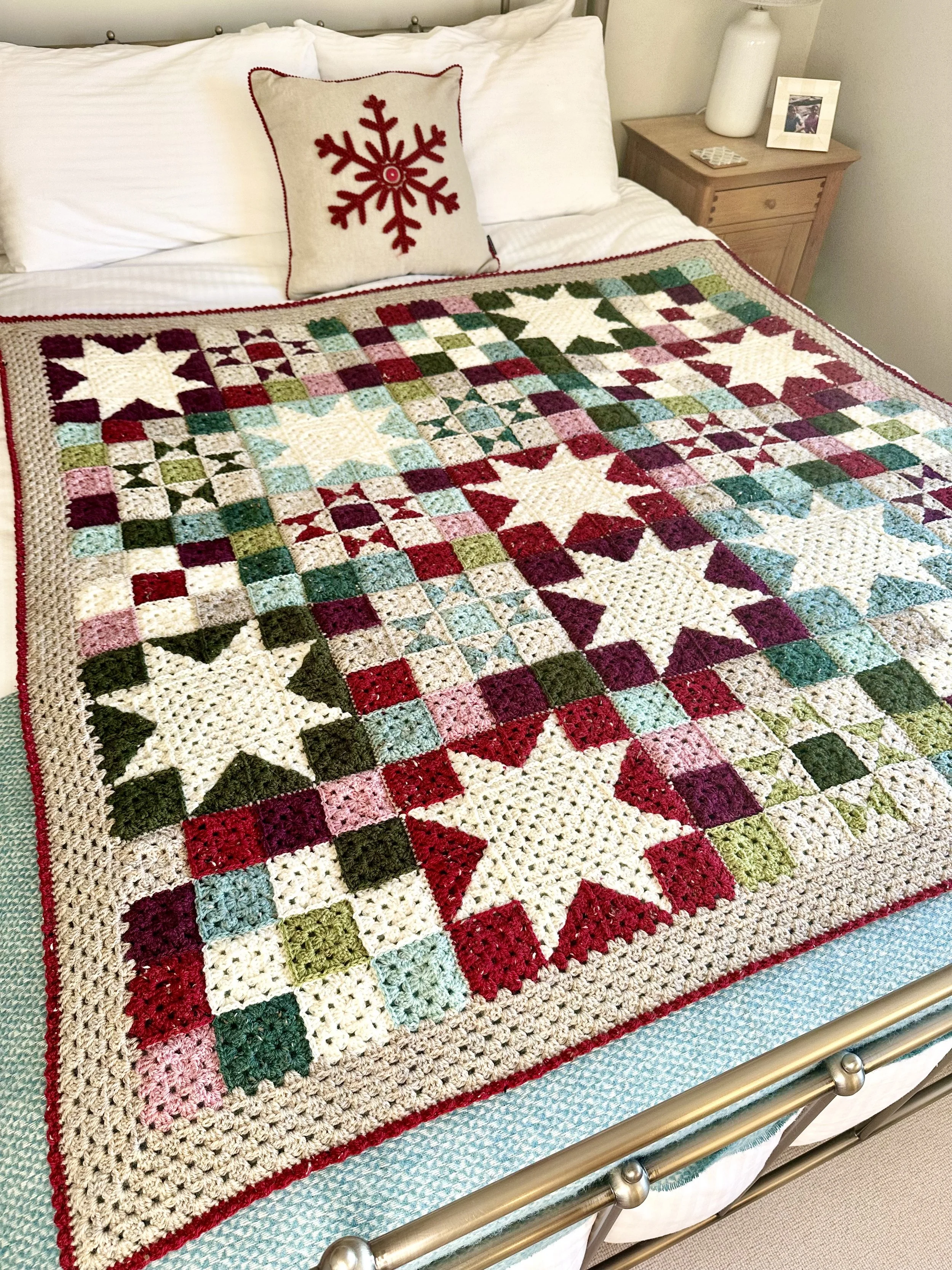 Winter Lights is designed to look like twinkling Christmas Lights and uses Nine Patch, Sawtooth Star and Ohio Star blocks. I’ve used my favourite shades of Stylecraft Life DK for a gentle nod to the season without looking like a Christmas explosion. I’m hoping it has a more sophisticated, grown up vibe!